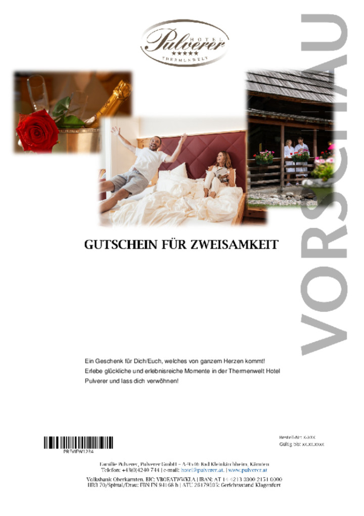 Ein Geschenk für Dich/Euch, welches von ganzem Herzen kommt!<br>Erlebe glückliche und erlebnisreiche Momente in der Thermenwelt Hotel Pulverer und lass dich verwöhnen!
